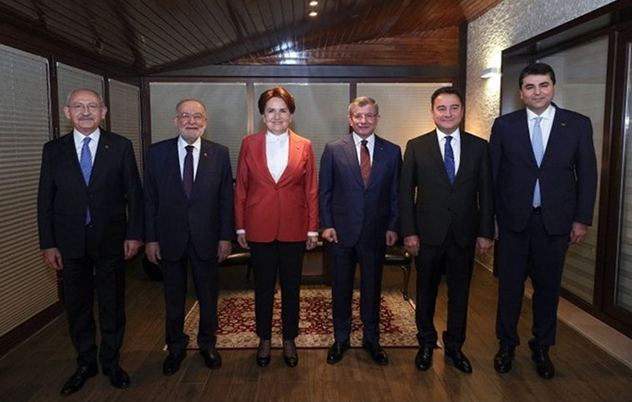 والأحزاب الستة هي: «الشعب الجمهوري» بزعامة كمال كليتشدار أوغلو، و«الجيد» ميرال أكشينار، و«الديمقراطية والتقدم» علي باباجان، و«السعادة» تمل كارامولا أوغلو، و«المستقبل» أحمد داود أغلو، و«الديمقراطي» جولتكين أويصال. وأعلن زعماء الأحزاب الستة، عقب اجتماع استغرق نحو 8 ساعات واختتم في ساعة مبكرة من صباح يوم الاثنين بمقر حزب «المستقبل» في أنقرة، الاتفاق على 10 مبادئ سيتم الالتزام بها في الفترة القادمة، التي وصفوها في بيان صدر عنهم، بـ«التاريخية الحرجة».